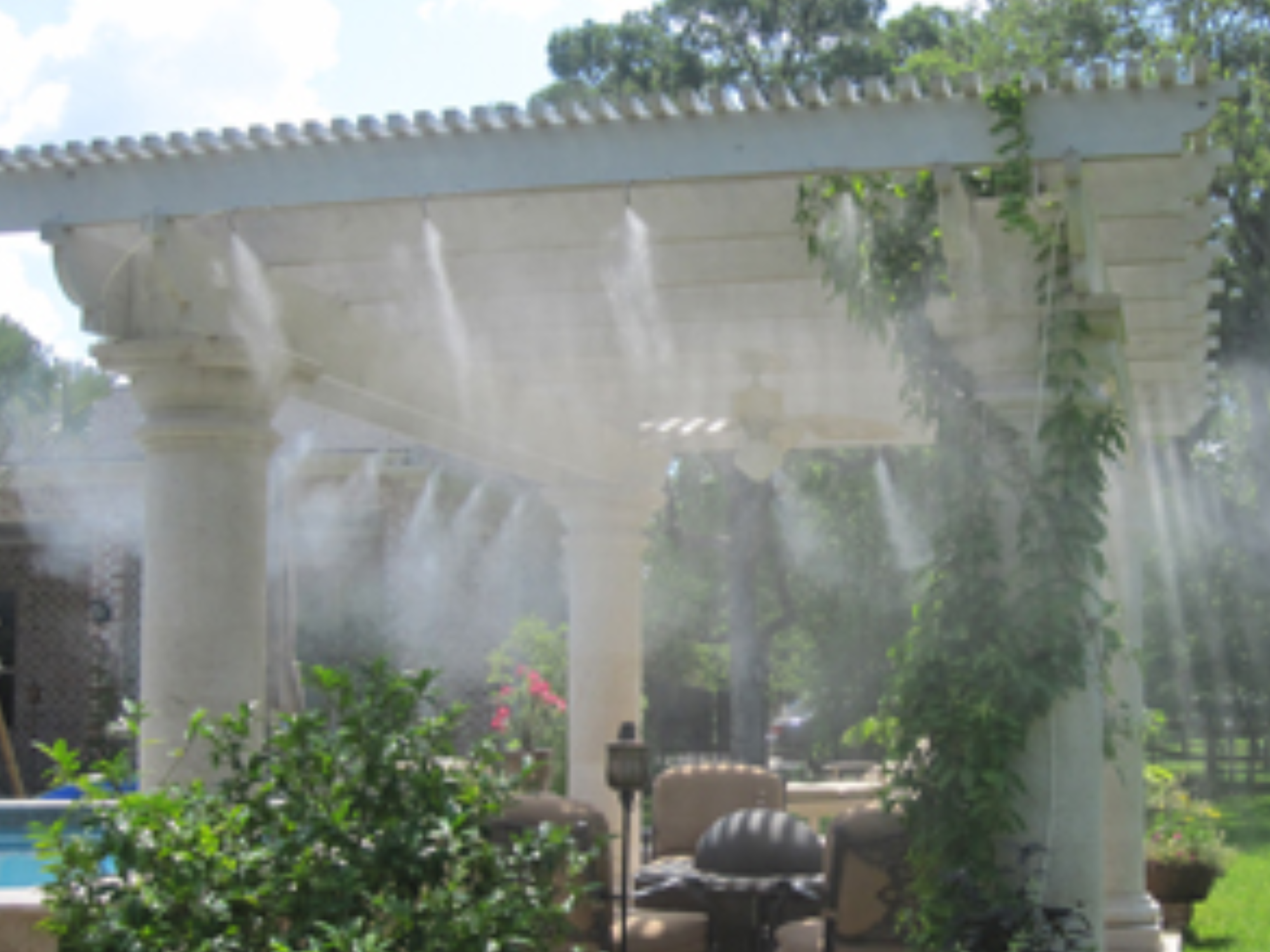Omvandla din utomhusoas till en sval tillflyktsort under heta sommardagar med AquaBreeze's innovativa kylfunktion. Aktivera helt enkelt dimfunktionen och känn temperaturen sjunka när den uppfriskande dimman omsluter din uteplats eller däck. Säg hej till utomhusmat och avkoppling utan obehaget med svidande värme.